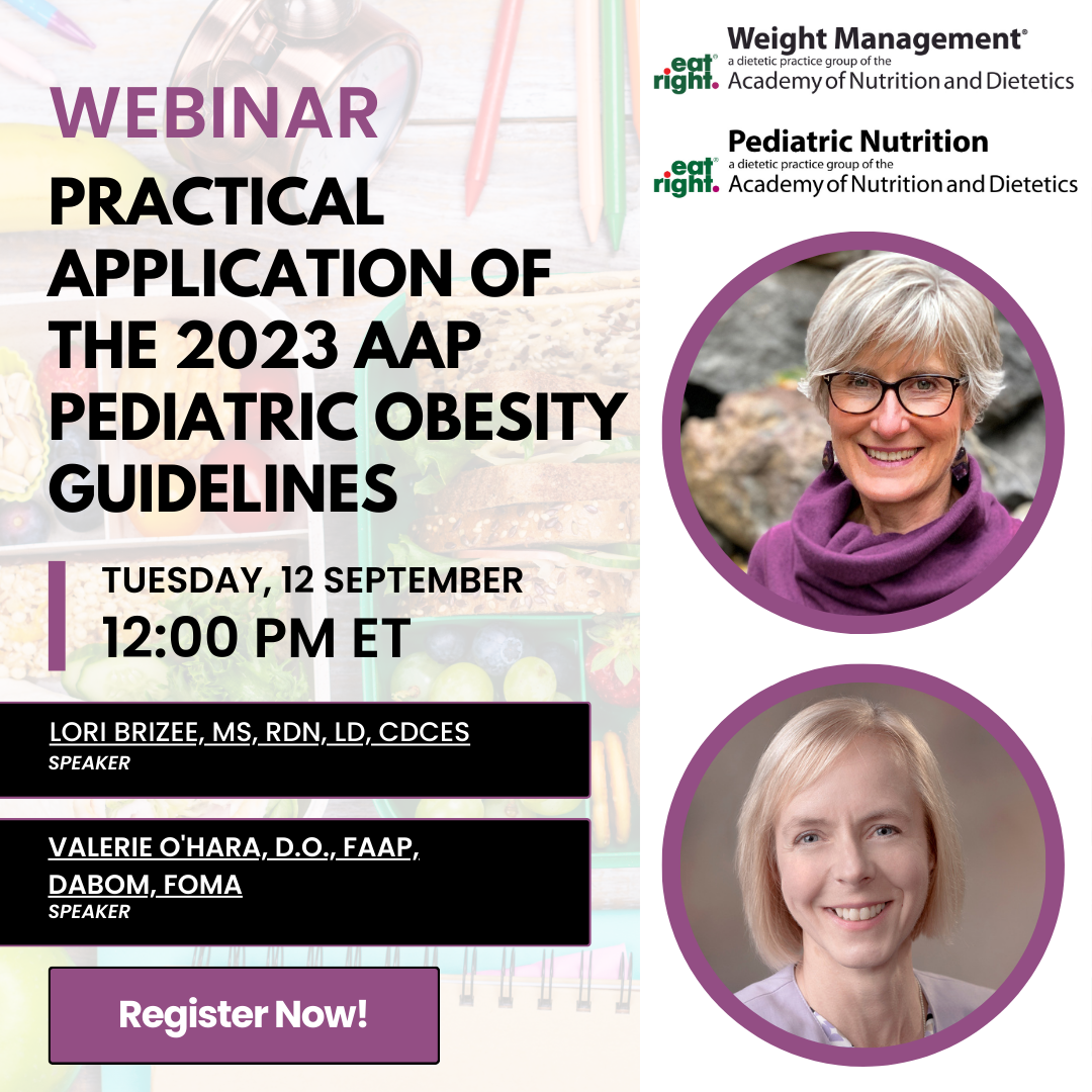 The recently released American Academy of Pediatrics Clinical Practice Guideline for the Evaluation and Treatment of Children and Adolescents with Obesity has sparked a lot of conversation about how we treat and discuss obesity in the pediatric population. Presented from the perspective of a Physician and Registered Dietitian Nutritionist working in pediatric obesity prevention and treatment, this joint webinar will cover the evidence and development of the guidelines and how to effectively implement them in your practice. We anticipate this webinar will be approved for one hour CPEU.